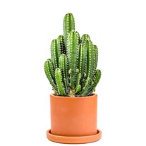 Cereus peruvianus, yani Peru süt kaktüsü, bol güneş ışığını seven, dayanıklı ve dekoratif bir türdür. Halk arasında “Florida kaktüsü” olarak da bilinir ve bilgisayar ile televizyon gibi cihazlardan yayılan radyasyonu emdiğine inanıldığı için sıkça çalışma alanlarında tercih edilir. En iyi gelişimini 18–30°C arasındaki sıcaklıklarda gösterir; 10°C’nin altındaki soğuklarda ise zarar görebileceğinden özellikle kışın soğuk cam kenarlarından uzak tutulmalıdır. Yaz aylarında toprağı tamamen kuruduktan sonra sulama yapılmalı, kışın ise ayda bir ya da daha seyrek, çok az miktarda su verilmelidir. Aşırı sulama kök çürümesine yol açabileceği için dikkat edilmelidir. Bu tür, suyu iyi tahliye eden kaktüs toprağını sever; saksı altında drenaj deliği bulunmalı ve tabana ponza ya da çakıl eklenmesi faydalıdır. Hızlı büyüyebildiği için her 2–3 yılda bir, bir boy büyük saksıya alınabilir. İlkbahar ve yaz aylarında ayda bir kez seyreltilmiş kaktüs besiniyle desteklenmesi gelişimini hızlandırır. Toksik değildir, ancak dikenleri oldukça serttir; bu nedenle çocuklardan ve evcil hayvanlardan uzak tutulması önerilir.